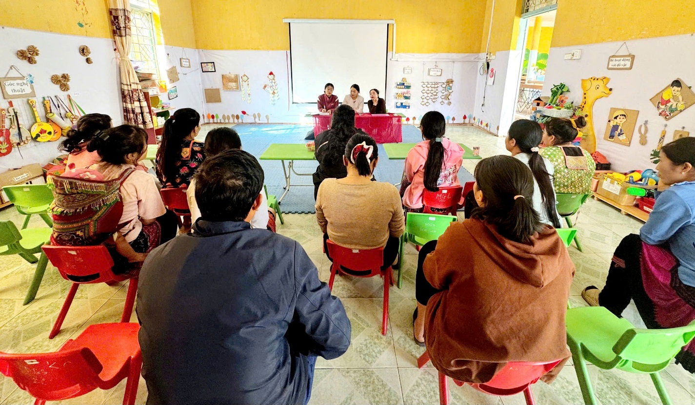 Thực hiện các nghị định của Chính phủ về chính sách đối với trẻ em mầm non, trong thời gian qua, Trường Mầm non Quảng Lâm, xã Quảng Lâm đã tổ chức họp phụ huynh học sinh tại các nhóm, lớp nhằm tuyên truyền, phổ biến đầy đủ, kịp thời các chế độ, chính sách mà trẻ mầm non đang được hưởng.